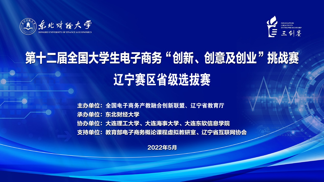 5月29日,由全国电子商务产教融合创新联盟和辽宁省教育厅主办,东北财经大学承办,大连理工大学、大连海事大学、大连东软信息学院协办的第十二届全国大学生电子商务“创新、创意及创业”挑战赛(以下简称“三创赛”)辽宁赛选拔赛区省级在东北财经大学成功举行。本次大赛以线上方式举行。